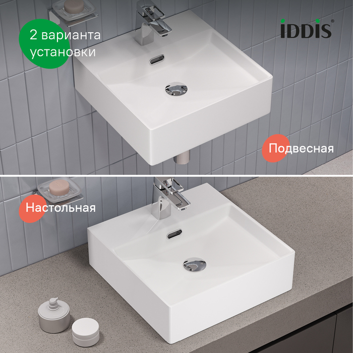 Два варианта установки: подвесной и настольный. Легко вписать в любой интерьер ванной и при необходимости изменить концепцию дизайна, не меняя умывальник. Крепежи в комплекте – в коробке с умывальником уже есть всё необходимое для монтажа, не нужно ничего докупать.