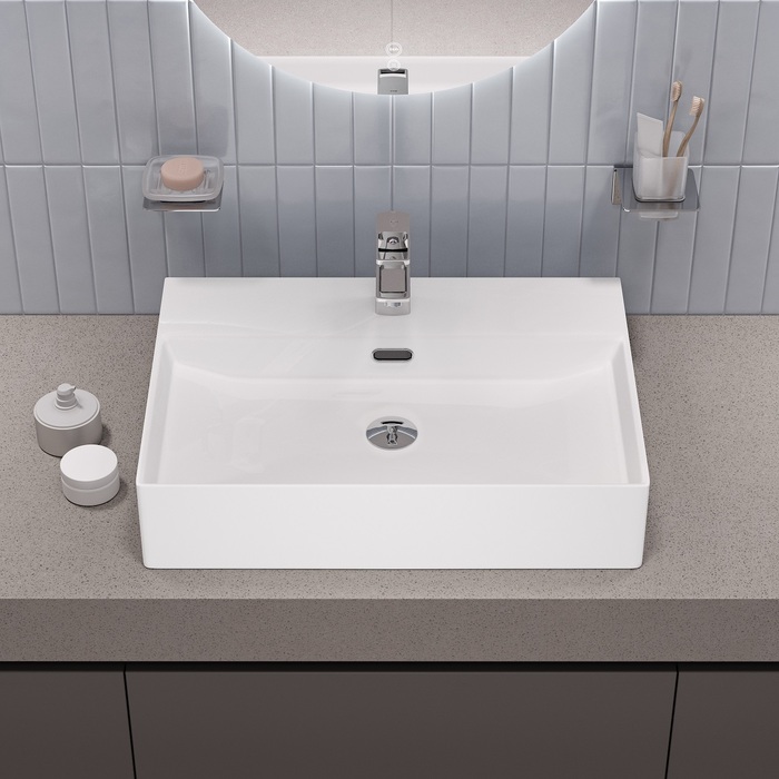 Два варианта установки: подвесной и настольный. Легко вписать в любой интерьер ванной и при необходимости изменить концепцию дизайна, не меняя умывальник. Крепежи в комплекте – в коробке с умывальником уже есть всё необходимое для монтажа, не нужно ничего докупать.