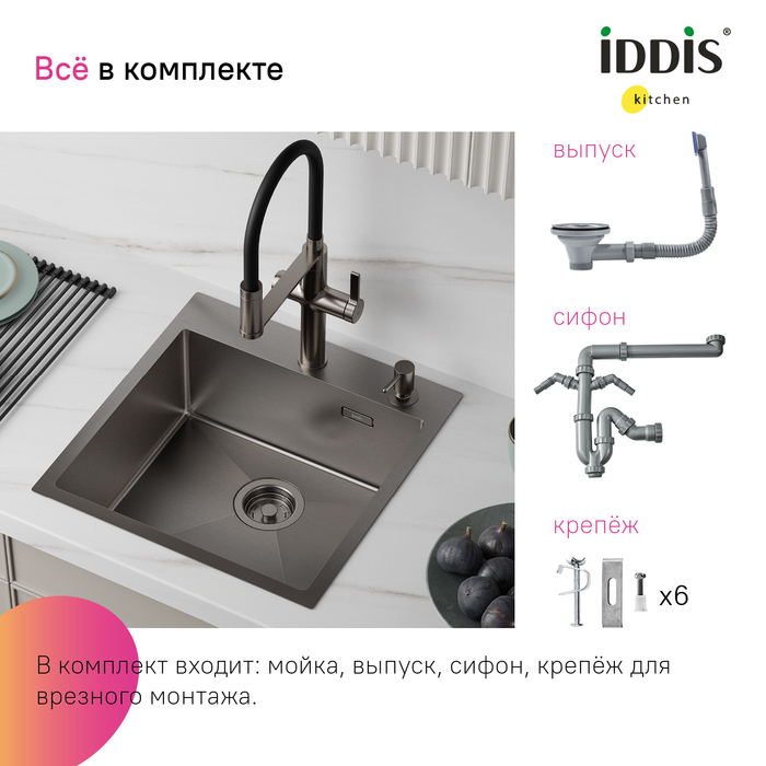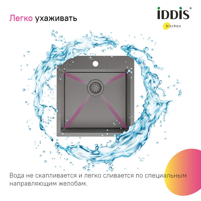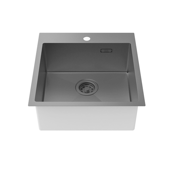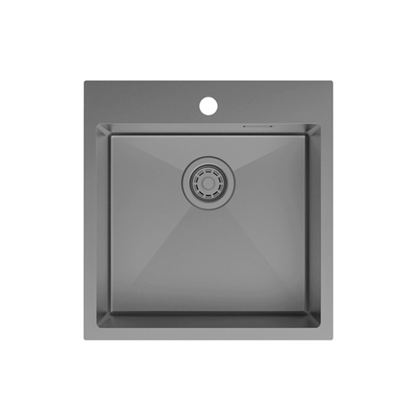 - красивый и стойкий графитовый цвет достигается путем обработки мойки парообразным металлом: частички краски проникают в структуру стали и образуют микрослой (PVD-покрытие) на поверхности