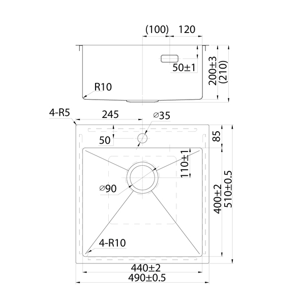 - подходит для врезного монтажа, подстольный монтаж не предусмотрен; вырез под мойку составляет 470х490 мм