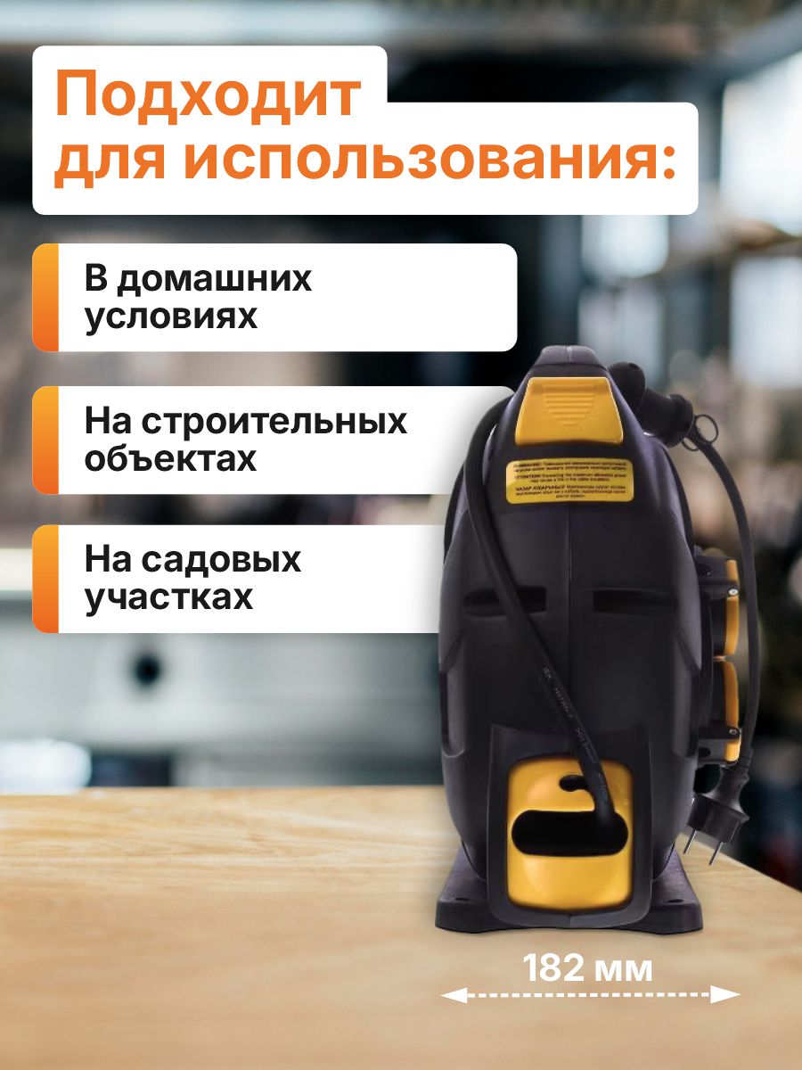 Удлинители на катушке с автоматической смоткой кабеля служат для удобного и безопасного подключения электрических приборов и оборудования к источнику питания. Отлично подходят для использования в домашних условиях, на строительных объектах, на садовых участках или в других местах, где требуется быстрое и удобное подключение к электрической сети. Экономят место, безопасны и эргономичны.