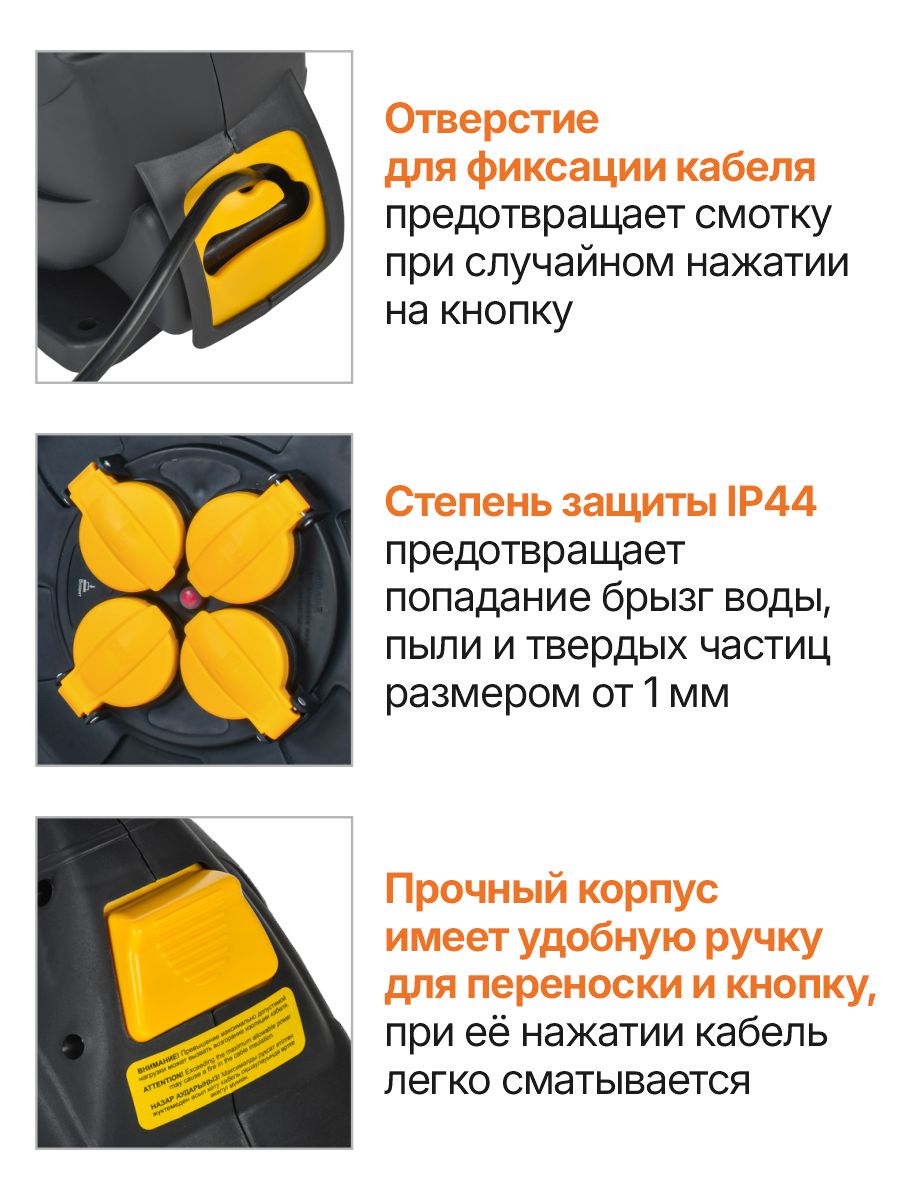 - механизм автоматической смотки кабеля предотвращает его спутывание и залом