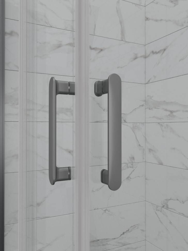 Двери выполнены из 6 мм закаленного стекла, что обеспечивает безопасность и высокую прочность. Стекло крайне сложно разбить, но если это произойдет, то расколется оно на маленькие безопасные осколки.