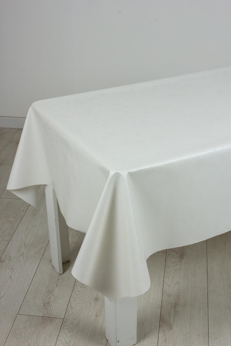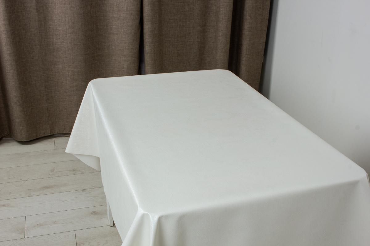 Изделие выполнено из ПВХ с армирующей тканой основой. Такая конструкция сочетает влагостойкость и легкость очистки полимерного верхнего слоя с устойчивостью и стабильностью размеров текстильной основы. Плотность материала составляет 430 г/м², что обеспечивает достаточную толщину для защиты от механических воздействий (например, от посуды или столовых приборов), но при этом клеенка остается гибкой и легко расстилается.