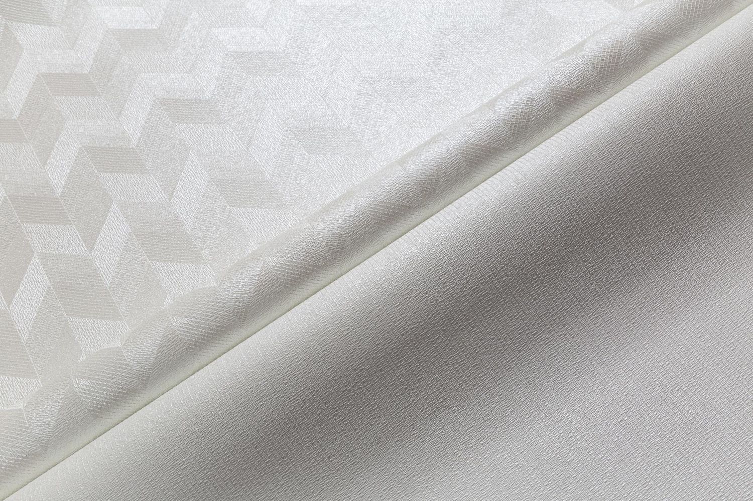 Тонко введённый люрексовый блеск не доминирует, а работает как световой акцент. Он подчёркивает геометрию рисунка и усиливает эффект объёма, делая тиснение более выразительным. Свет мягко скользит по фактуре, образуя деликатные переливы без резкого блеска.