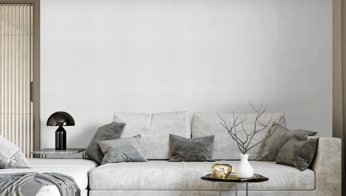Поверхность обоев напоминает плотную фактурную ткань с тонким переплетением нитей. Рельеф читается как визуально, так и на ощупь, создавая эффект «живой» стены. Благодаря этому интерьер выглядит тёплым, уютным и одновременно современным.