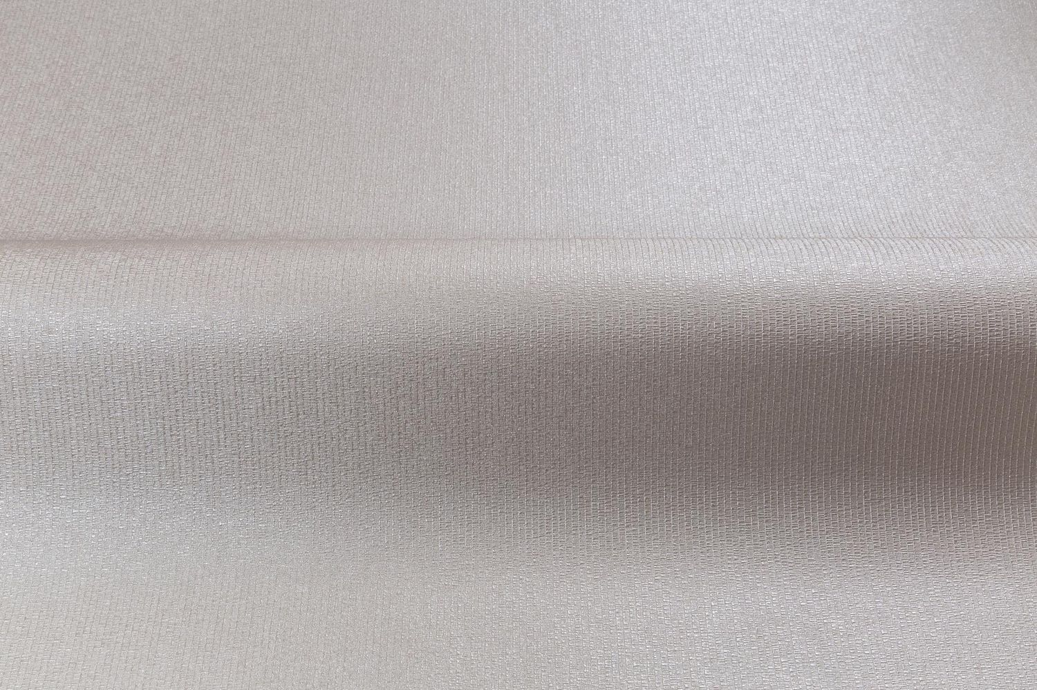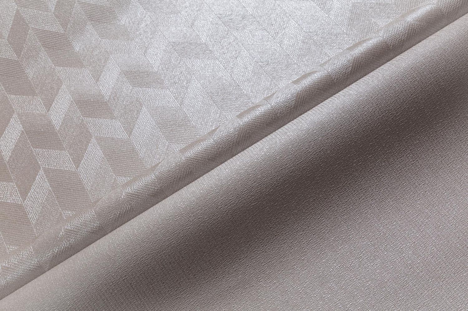 Тонко введённый люрексовый блеск не доминирует, а работает как световой акцент. Он подчёркивает геометрию рисунка и усиливает эффект объёма, делая тиснение более выразительным. Свет мягко скользит по фактуре, образуя деликатные переливы без резкого блеска.