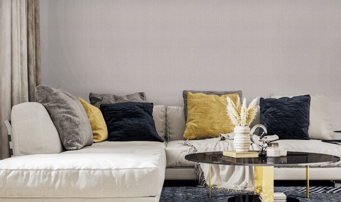 Поверхность обоев напоминает плотную фактурную ткань с тонким переплетением нитей. Рельеф читается как визуально, так и на ощупь, создавая эффект «живой» стены. Благодаря этому интерьер выглядит тёплым, уютным и одновременно современным.