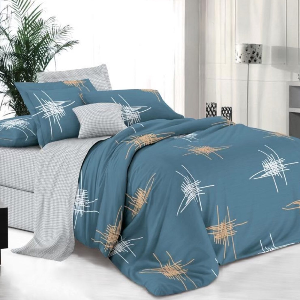 Комплектация: простыня 1шт - 220х240 см, пододеяльник 1шт - 200х220 см, наволочки 2шт - 70х70 см.