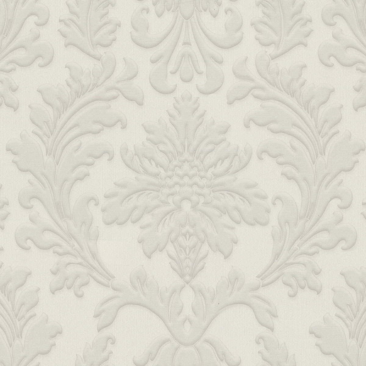 Объёмный орнамент с крупными листьями аканта, плавными завитками и цветочными розетками выглядит так, словно он действительно соткан из тончайших нитей. Поверхность полотен имитирует натуральную шелковую ткань. Гладкая, бархатистая фактура с микрорельефом усиливает ощущение глубины и объёма, а перламутровые частицы и мелкая россыпь глиттера добавляют мягкое сияние, которое меняется в зависимости от освещения: при дневном свете оно выглядит словно лёгкая дымка, а вечером превращается в насыщенный жемчужный блеск. Цветовая палитра построена на тончайших нюансах светлых оттенков: от натурального жемчуга и кристально-белого до мягкого экрю, тёплой слоновой кости, молочно-ванильного и холодного жемчужно-серебристого. Эти оттенки подчёркивают текстильную фактуру и создают ощущение спокойствия, чистоты и свежести.