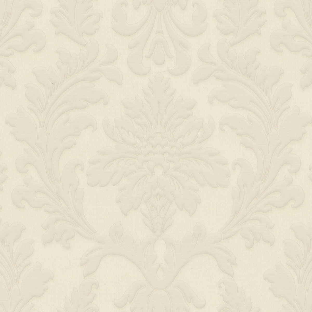 Объёмный орнамент с крупными листьями аканта, плавными завитками и цветочными розетками выглядит так, словно он действительно соткан из тончайших нитей. Поверхность полотен имитирует натуральную шелковую ткань. Гладкая, бархатистая фактура с микрорельефом усиливает ощущение глубины и объёма, а перламутровые частицы и мелкая россыпь глиттера добавляют мягкое сияние, которое меняется в зависимости от освещения: при дневном свете оно выглядит словно лёгкая дымка, а вечером превращается в насыщенный жемчужный блеск. Цветовая палитра построена на тончайших нюансах светлых оттенков: от натурального жемчуга и кристально-белого до мягкого экрю, тёплой слоновой кости, молочно-ванильного и холодного жемчужно-серебристого. Эти оттенки подчёркивают текстильную фактуру и создают ощущение спокойствия, чистоты и свежести.