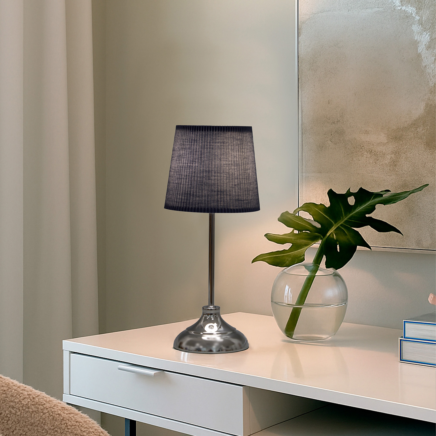 Настольный светильник UNIEL UML-B309 E14 Chrome/Dark Blue сочетает в себе стильный дизайн и функциональность. Элегантное сочетание хромированных элементов с темно-синим корпусом делает этот светильник прекрасным дополнением любого интерьера, создавая атмосферу уюта и комфорта.