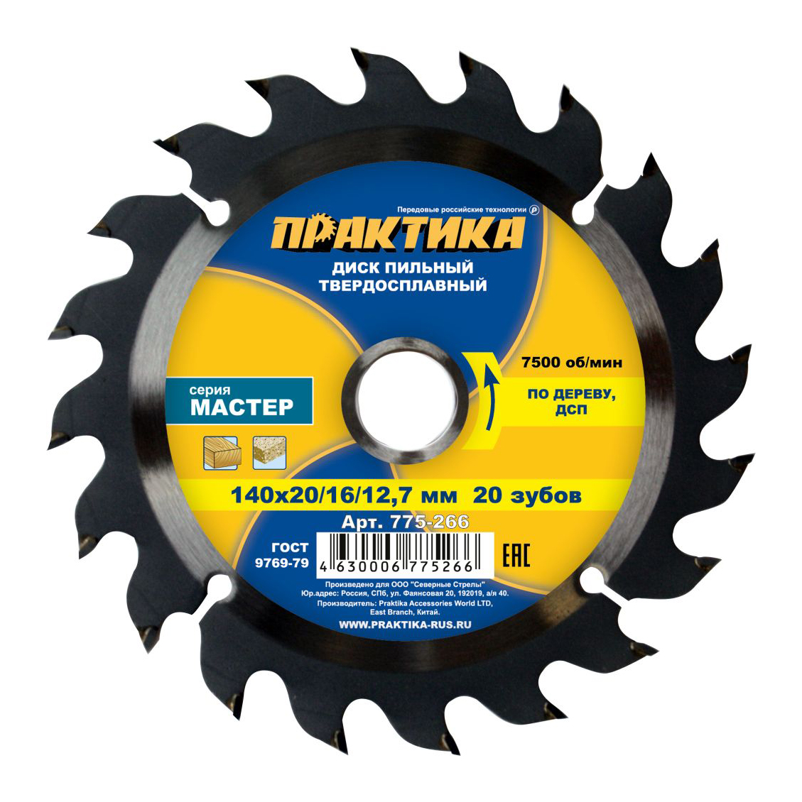 Диск пильный твёрдосплавный ПРАКТИКА 775-266 диаметр наружный 140 мм, диаметр посадочный 20/16/12,7 мм. Данный пильный диск делает точный и качественный пропил, обеспечивает чистое пиление и чёткие кромки. Используется с циркуляционными пилами. Количество зубов (лопастей) 20, толщина диска 1,8мм.