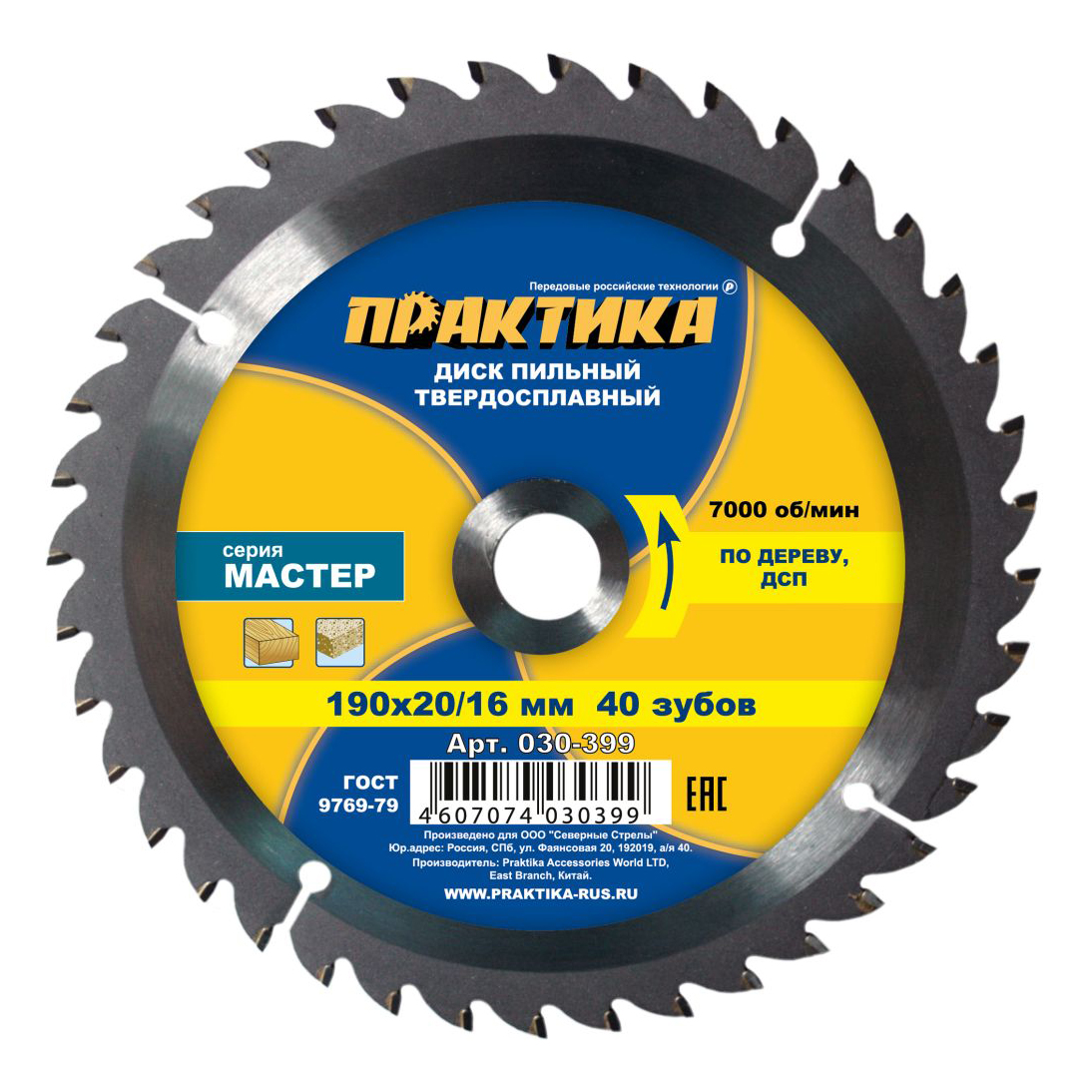 Диск отрезной ПРАКТИКА Мастер 190х2,2х20/16мм 40 зубьев 030-399
