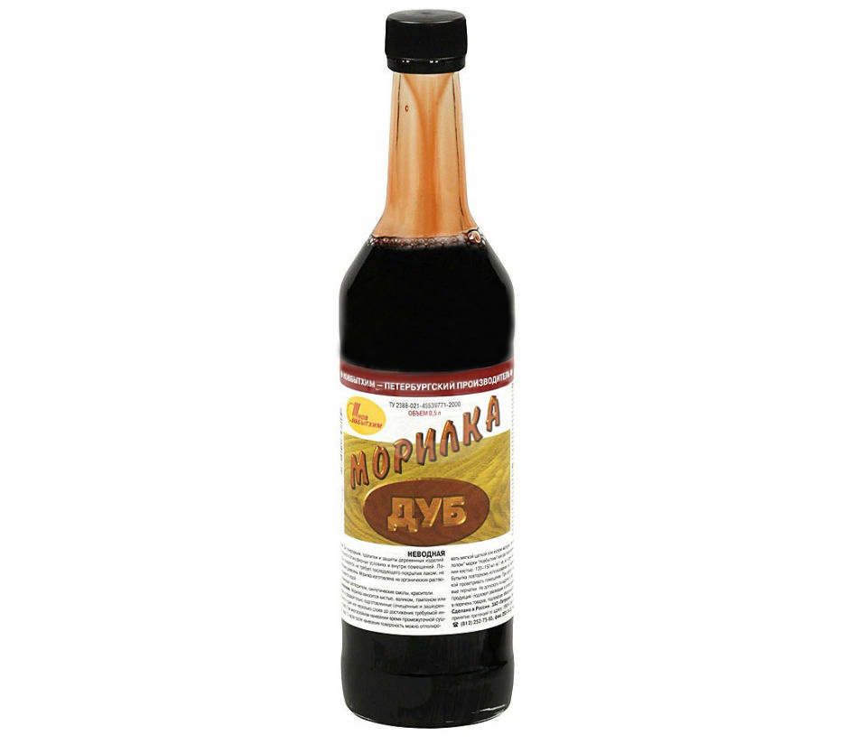 Морилка неводная предназначена для тонирования, пропитки и защиты деревянных изделий, эксплуатирующихся в атмосферных условиях и внутри помещений. Покрытие хорошо полируется, не требует обязательного покрытия лаком, однако для придания глянца сверху на слой морилки можно нанести лак ХВ-784, лак "Цапон" или Яхтный лак "Главный технолог" производства "Новбытхим". Морилка не вызывает набухания древесины. Она изготовлена на основе органических растворителей и не смывается водой.