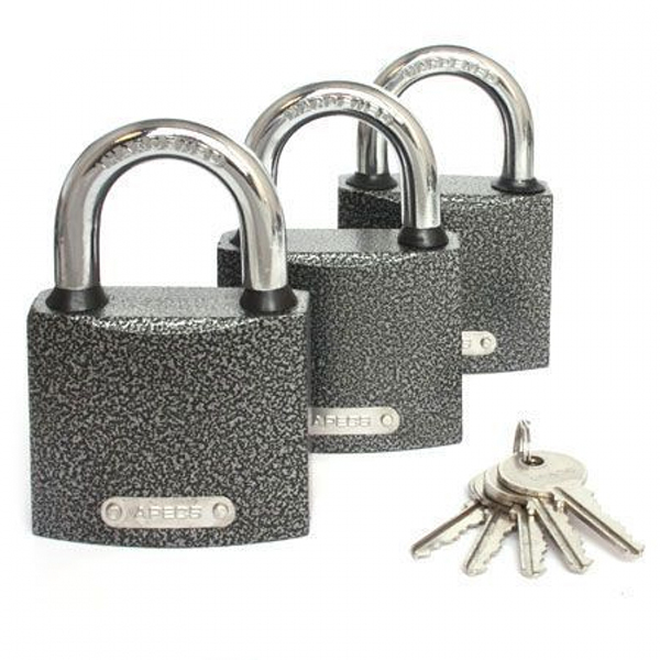 Мастер-система APECS PD-01-63, состоящая из 3 навесных замков и 5 ключей английского типа. Три замка открываются пятью ключами. Рекомендован для установки на металлические и деревянные двери. Запирается автоматически нажатием на дужку замка.