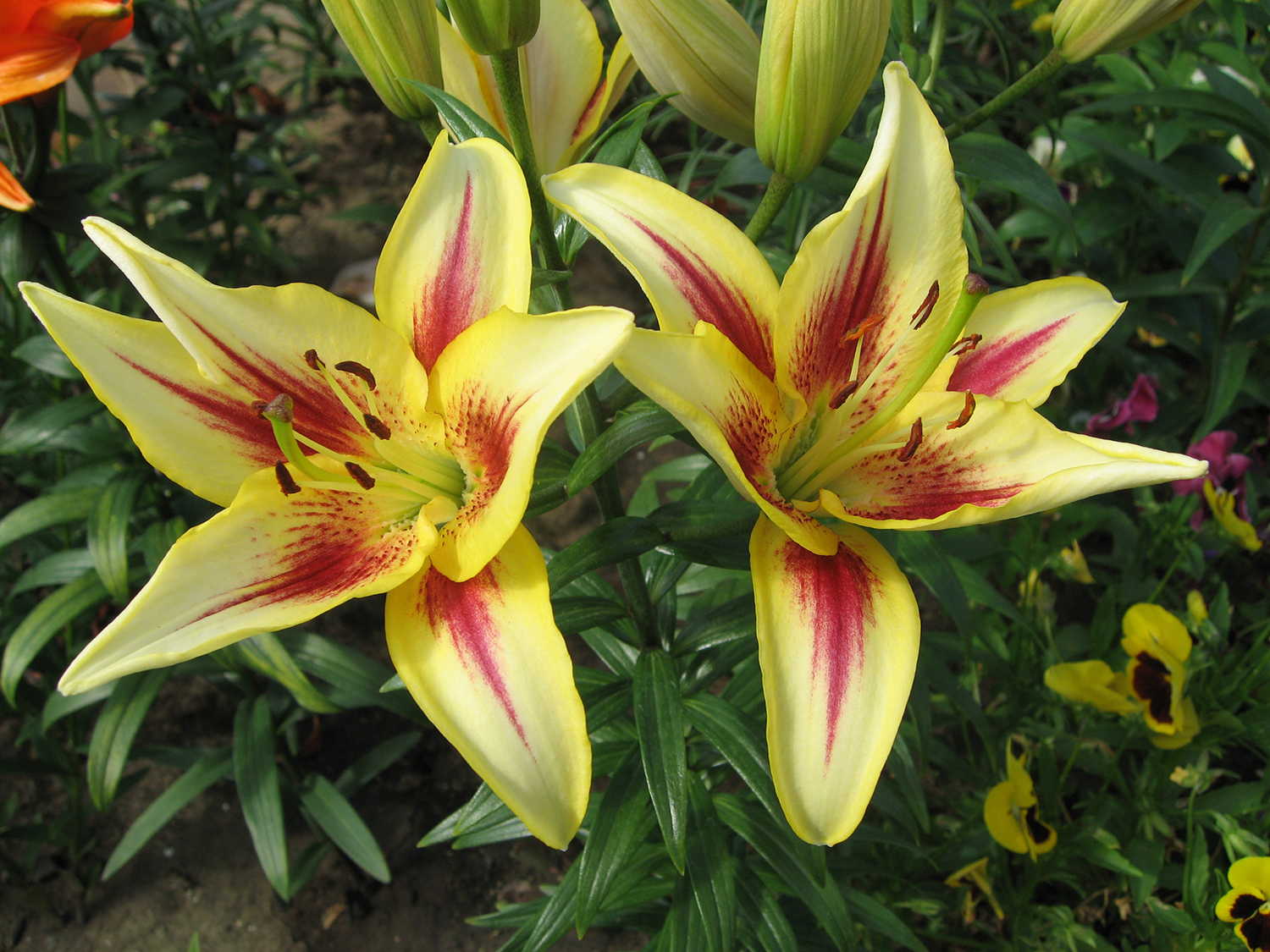 ОА-гибриды - группа растений, полученных в результате скрещивания Восточных и Азиатских гибридов. Цветки у них мельче, чем у восточных гибридов (18-20 см в диаметре), но гораздо крупнее, чем у большинства азиатских гибридов и направлены, как правило, вверх. Имеют приятный аромат. Зимуют без укрытия.