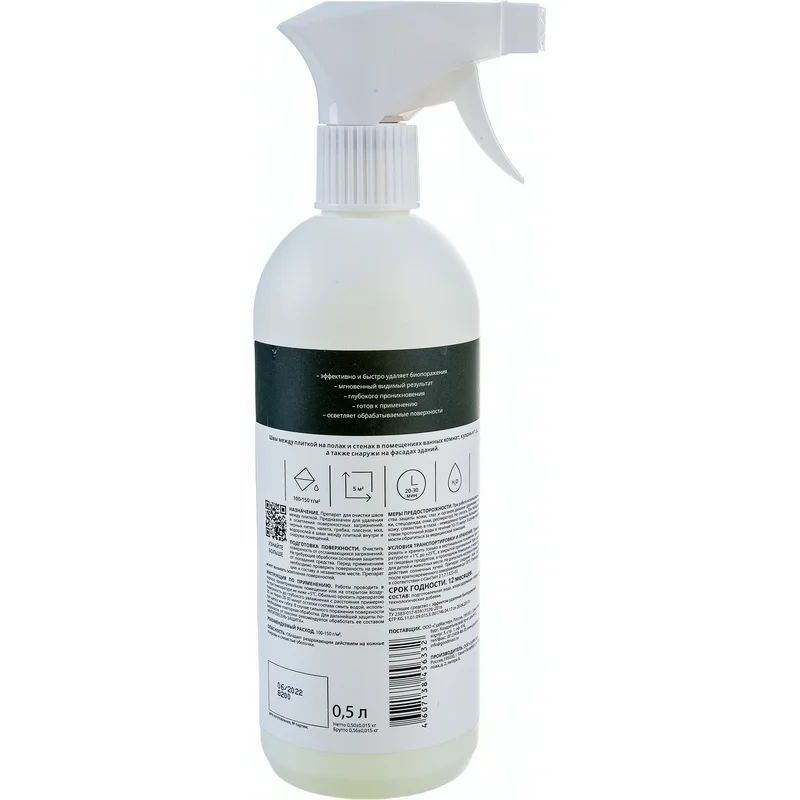 Препарат для очистки швов между плиткой. Предназначен для удаления и осветления поверхностных загрязнений: чёрных пятен, налета, грибка, плесени, мха, водорослей в швах между плиткой внутри и снаружи помещений.